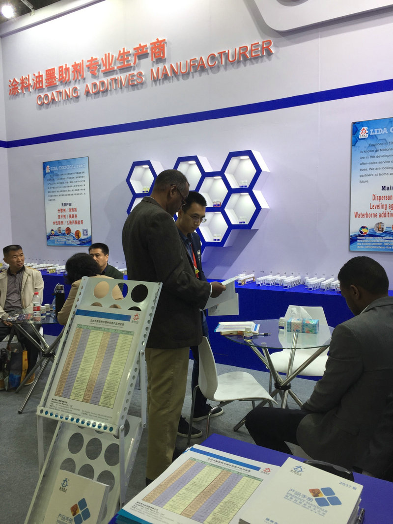 上周,2017年中國國際涂料展Chinacoat在上海新國際博覽中心舉辦,立達化工作為參展商,共派出7人參加展會,展位面積28平米,展示助劑樣品幾十種共上千瓶,吸引了大量中外客戶參觀洽談,并有客戶現場下單,成果顯著。